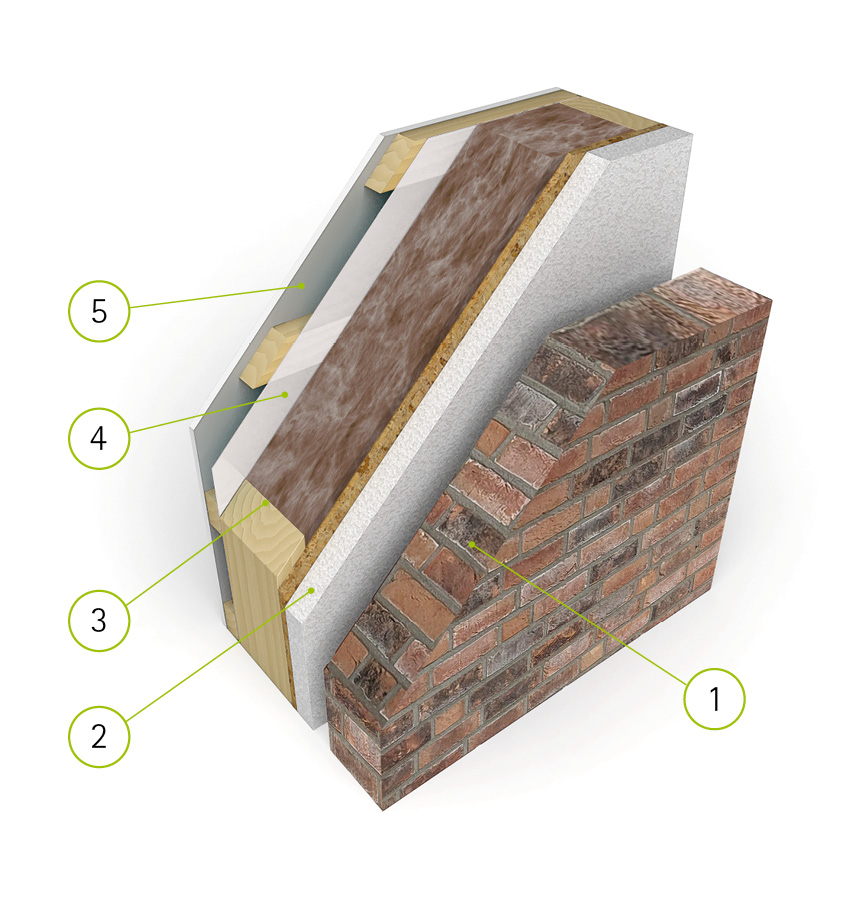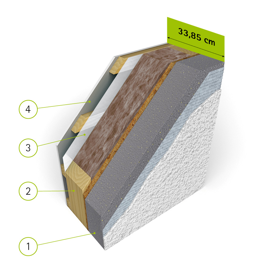 - Holzständerwerk mit 220 mm mineralischer Dämmung