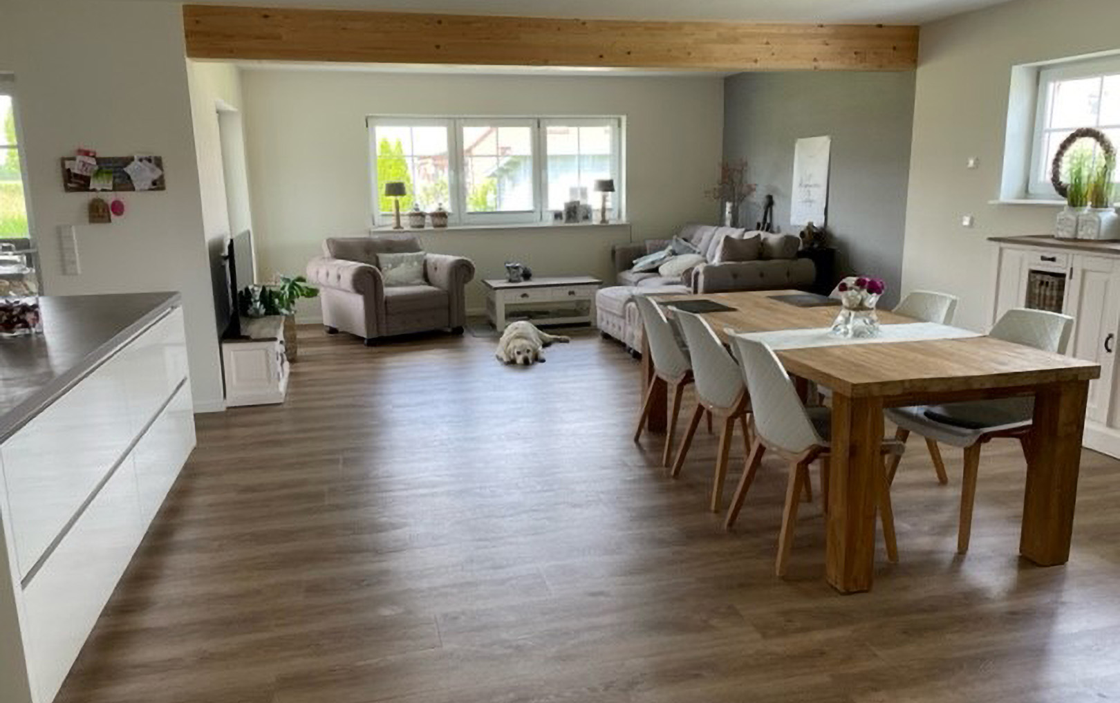 Bei beiden befindet sich der Wohn- und Essbereich im Hauswinkel, die Küche wurde jedoch unterschiedlich positioniert. Dadurch ergeben sich unterschiedliche Raumanordnungen in den beiden Grundrissen und ermöglichen bei Variante C zusätzlich ein Gäste-WC. Schauen Sie selbst, welche Lösung ihren Vorstellungen entspricht.